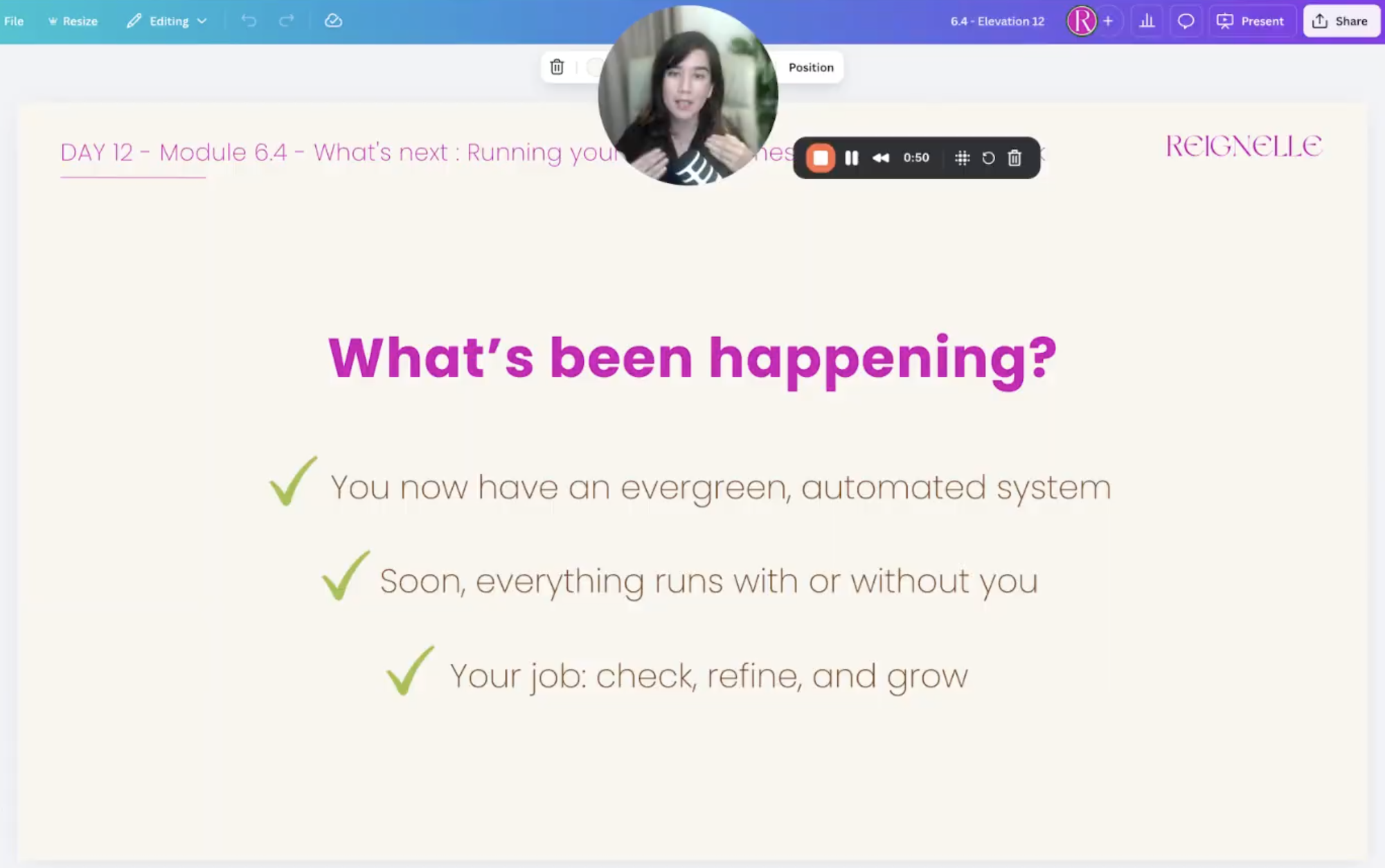 Elevation 12 is made up of 12 focused daily modules, each designed to be completed in less than an hour. Every lesson gives you clear, actionable tasks that builds toward a fully automated wellness business. No theory, no overwhelm, just real systems you can implement immediately.
